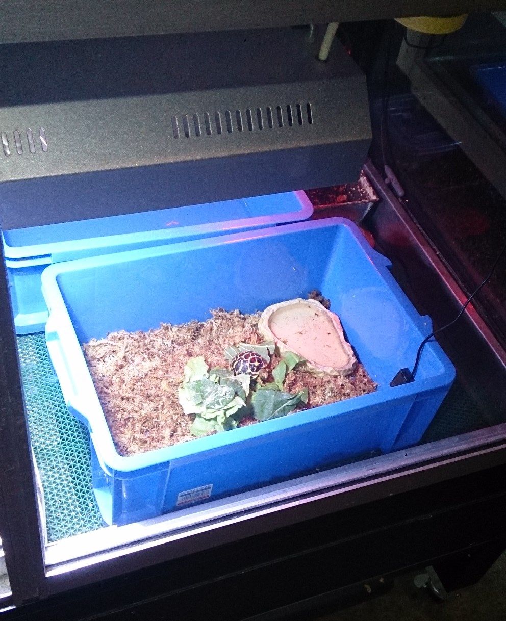 Ts産インドホシガメベビーのケージに保温球を追加しました